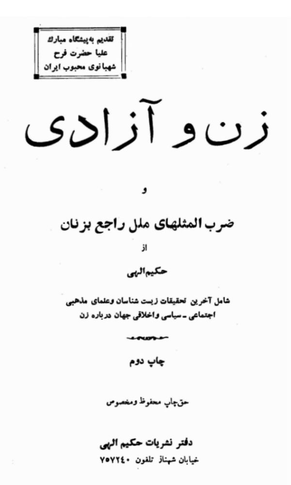 کتاب زن و آزادی و ضربالمثلهای ملل درباره زنان اثر حکیم اللهی