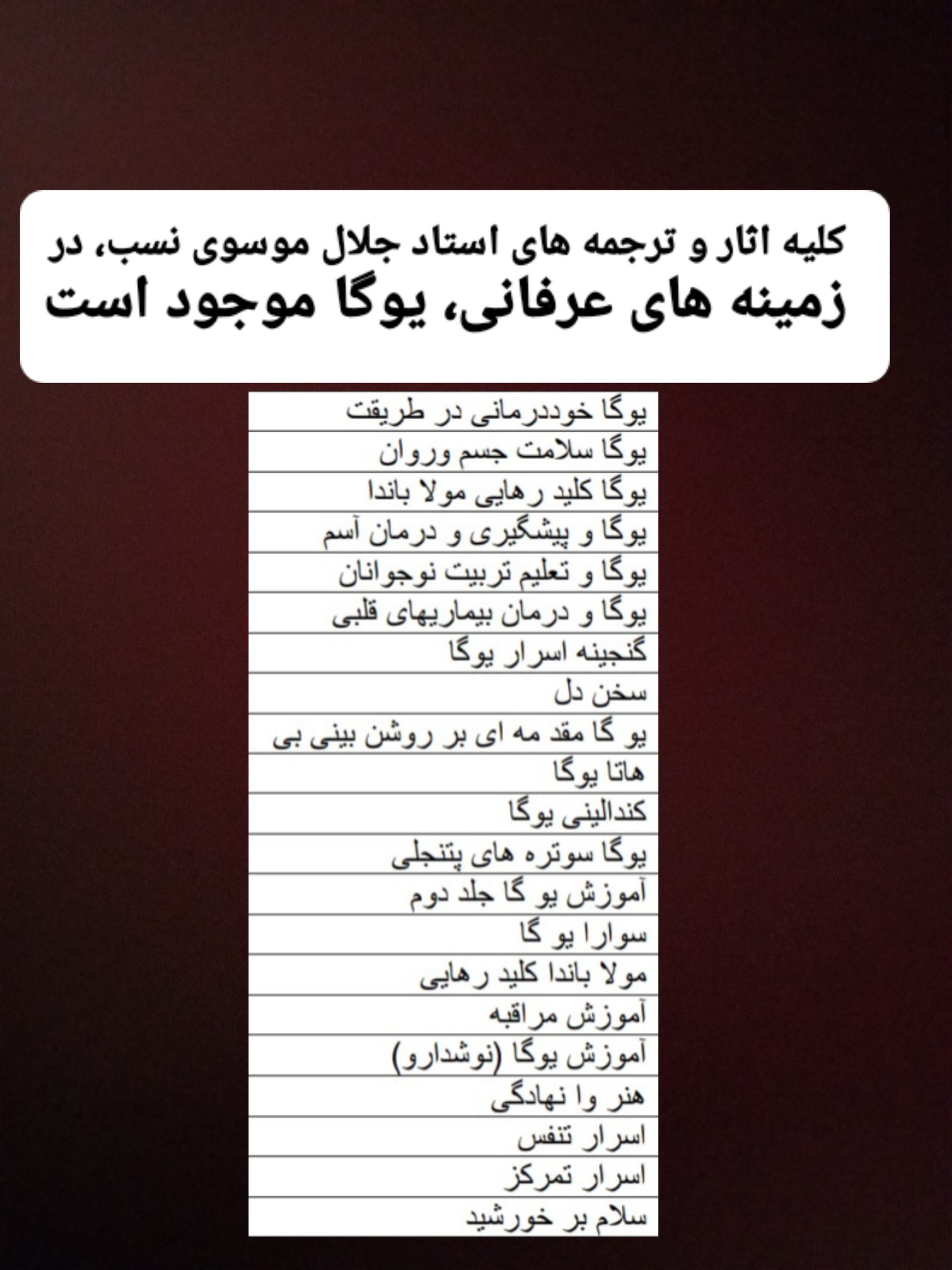 جهت تهیه و خرید کتابهای(ترجمه) استاد جلال موسوی نسب و کتابهای خوب و کمیاب دیگر با شماره 09122267350 تماس بگیرید
